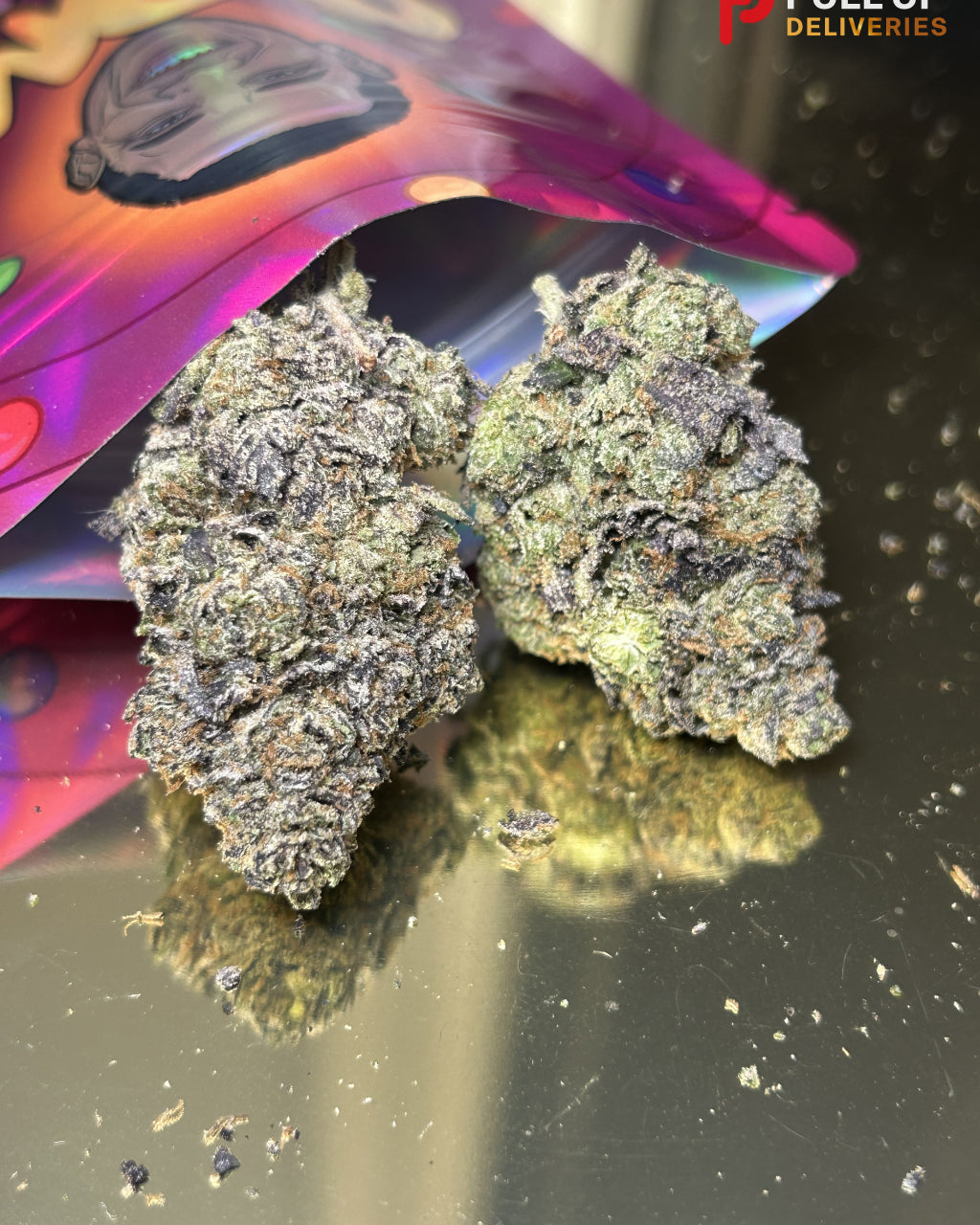 Close your eyes and take a hit of Juicy Fruit, and suddenly you're somewhere tropical. The flavor is an explosion of fruit punch sweetness colliding with bright, zesty lemon—some swear they taste piña colada's creamy coconut mingling with the deep, dusky richness of ripe plums. It's not one note; it's an orchestra of fruit, each inhale revealing new layers, each exhale leaving you craving more. The aroma fills the room like a farmer's market in full summer bloom—intoxicating, vibrant, impossible to ignore. This isn't just cannabis; it's a sensory escape, a bouquet of fruity complexity that promises the experience to come will be anything but ordinary.