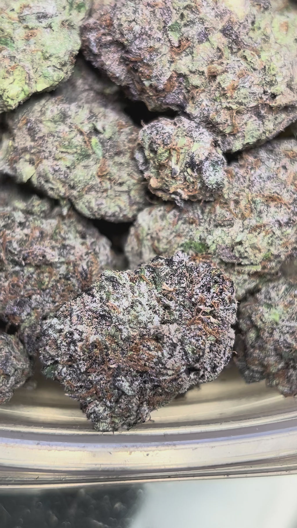 Rainbow Runtz is visual poetry in botanical form. Its dark olive-green, heart-shaped buds are kissed with rich purple undertones and framed by vibrant red-orange hairs. Thick, frosty trichomes sparkle like freshly fallen snow, making each nug look dipped in sweet resin. Break it open, and a bouquet of floral herbs, lavender, and sweet fruit bursts forth—like stepping into a springtime garden after rain. On the tongue, expect a sweet pear flavor upfront, followed by notes of fresh apricot, spicy lavender, and a finish reminiscent of earthy forest floor. It’s a multi-sensory indulgence.